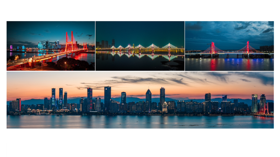 作品标题:通途红谷滩 作品简介:该组作品通过拍摄南昌市赣江上的八一大桥、朝阳大桥、洪州大桥及赣江西岸的红谷滩CBD。用夜景方式来表现华灯初放时的美景,展现改革开放以来,赣江面上老、中、新一座座大桥变通途,崛起的红谷滩新貌。