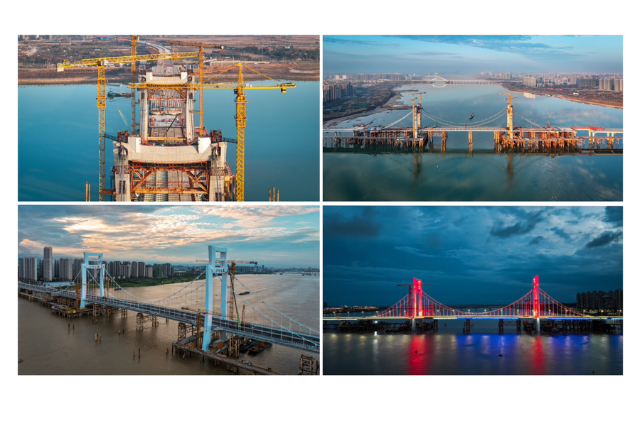 作品标题:建设中的洪州大桥 作品简介:在南昌市赣江上游,一座正在崛起的洪州大桥如巨龙横卧。大桥主塔高耸入云,仿佛是顶天立地的巨人,从独特的视角望去,洪州大桥与复兴大桥、生米大桥等相互辉映,共同构成一幅波澜壮阔的桥梁画卷。晚霞的余晖洒在桥身上,为其披上一层绚丽的金纱,每当夜幕降临,璀璨的灯光依次亮起,桥身宛如一条璀璨的星河,照亮了赣江的夜空。洪州大桥成为了南昌城的新地标。