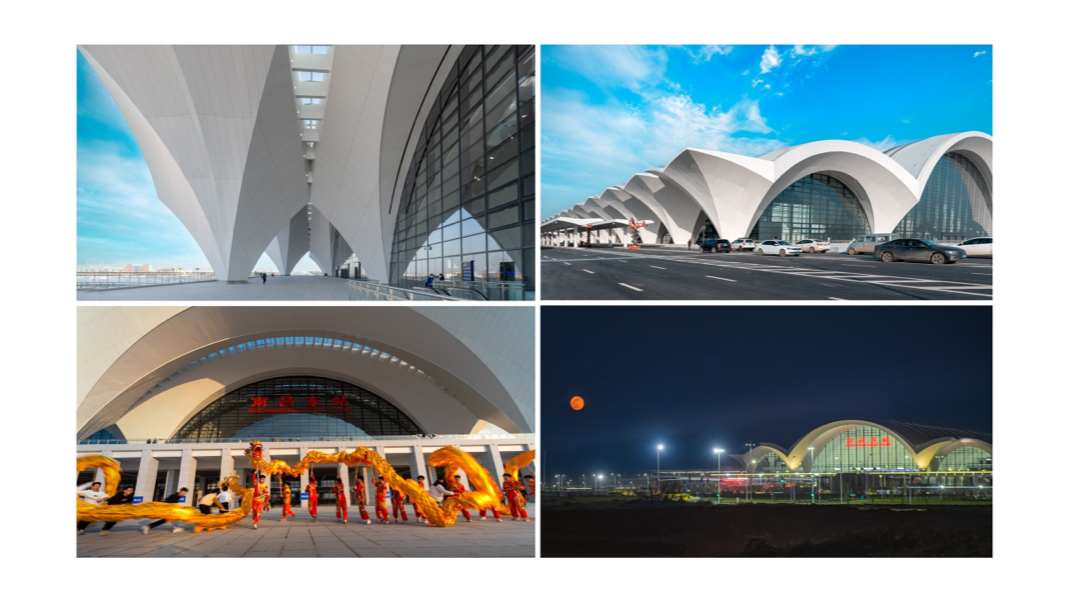 作品标题:南昌东站亮“真容” 作品简介:该组作品拍摄于南昌东站,车站“真容”展现后,令不少市民眼前一亮大呼“好美”,它完美地诠释“霞鹜齐飞瑞祥绽放”的设计理念,屋面顶棚如行云流水般的流畅线条,犹如展翅翱翔的“霞鹜”,这座现代化的高铁车站给人带来极佳的候车体验,已成为南昌又一个地标建筑。