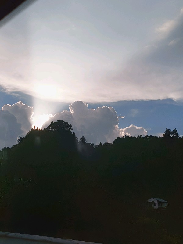 前几天回到家乡,发现天空格外美丽!图一的天光像是手电筒照射出来的光,穿透云层。图二是收获季节,蓝天白云。图三是大雨来临前的似乎一切都还正常的云朵。
